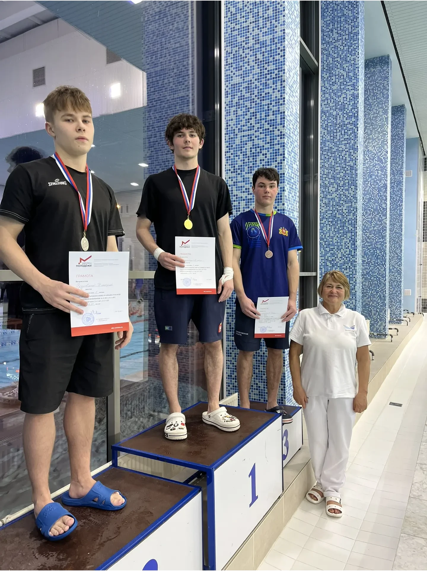 Беспамятных Семён 1 место трамплин 1 метр, 1 место трамплин 3 метра, 1 место трамплин 3 метра синхронные прыжки